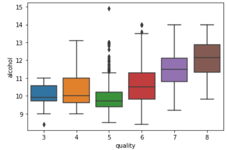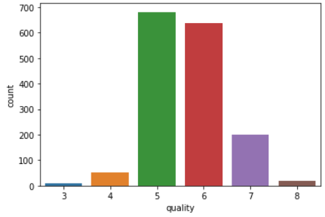 아래 결과에서는 quality라는 범주형 변수에서 3, 4, 5, 6, 7, 8이라는 6개의 그룹을 갖고 있으며, 그룹 5가 가장 많은 데이터를 포함하는 것을 확인할 수 있습니다.