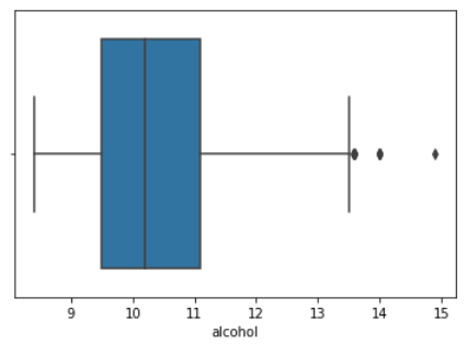 sns.boxplot(x='alcohol', data=df)