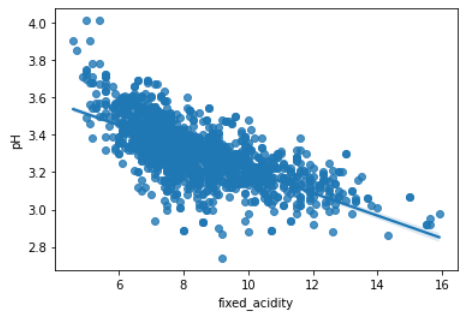 동일한 변수를 이용하여 regplot을 그린 결과입니다. 반비례하는 두 변수의 관계를 회귀선으로 나타내주어 분석가가 분석을 하는 데 확신을 더해줄 수 있죠.