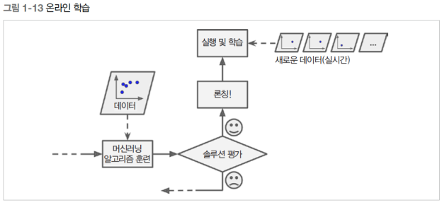 - 매 학습 단계가 빠르고 비용이 적게 들어 시스템은 데이터가 도착하는 대로 즉시 학습할 수 있씁니다.