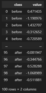 df1 = pd.DataFrame({'class': cls, 'value': values})
