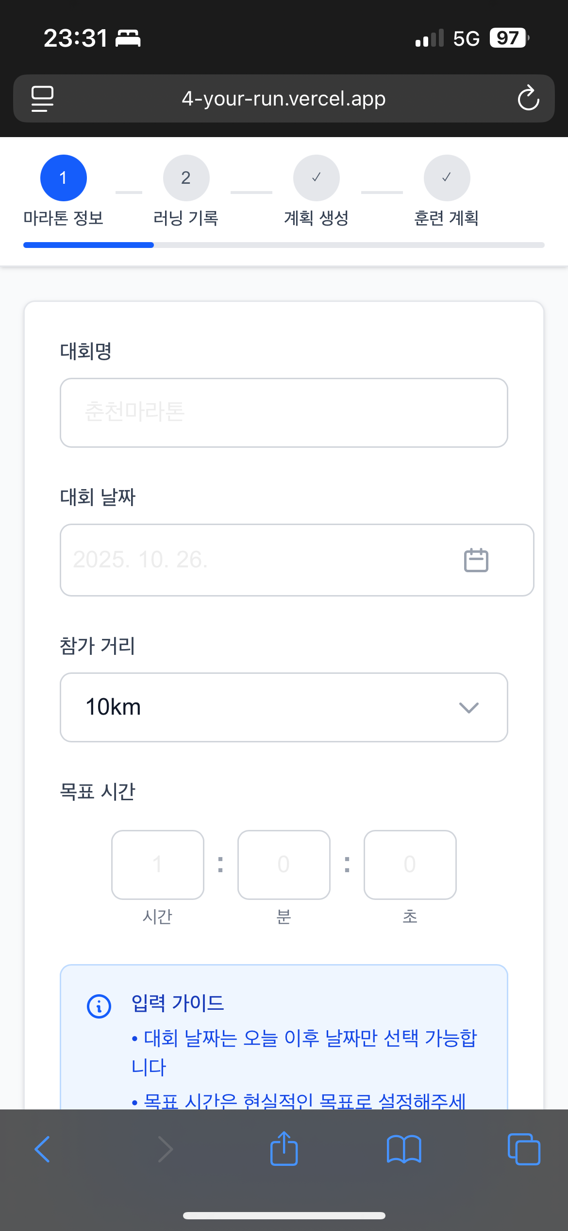 📍Step 1: 마라톤 정보 입력