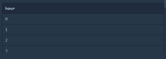 생각이 좀 필요한 문제였어요. 우선 0부터 23까지의 값을 갖는 HOUR 칼럼을 생성하고 이를 테이블 A라고 합니다. 이 테이블은 다음과 같이 생겼습니다.