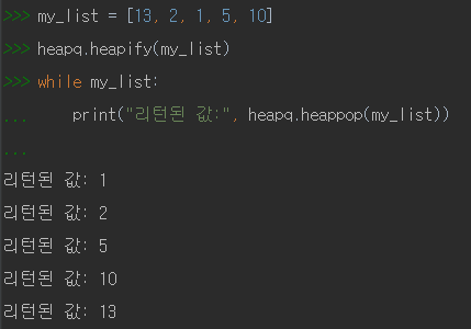 힙 정렬 : heapify(heap)