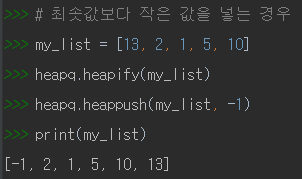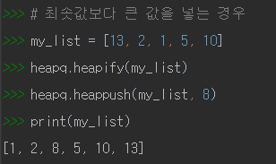 원소 삽입 : heappush(heap, item)